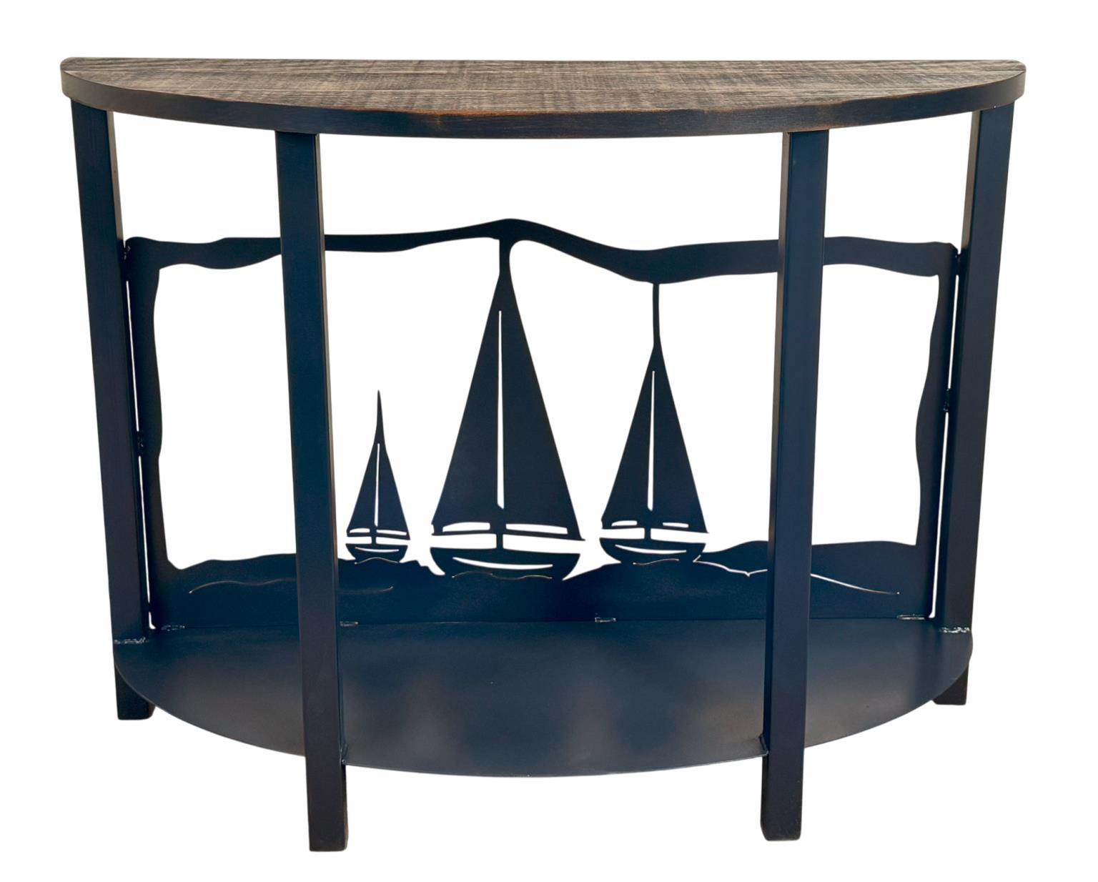 Solid Navy/Rough Navy Rounded 3D Sofa Table with Sailboat Scene