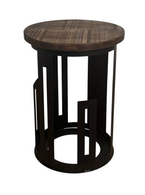 Cottage/Slate Square Iron Drink Table with Sailboat and Wood Top