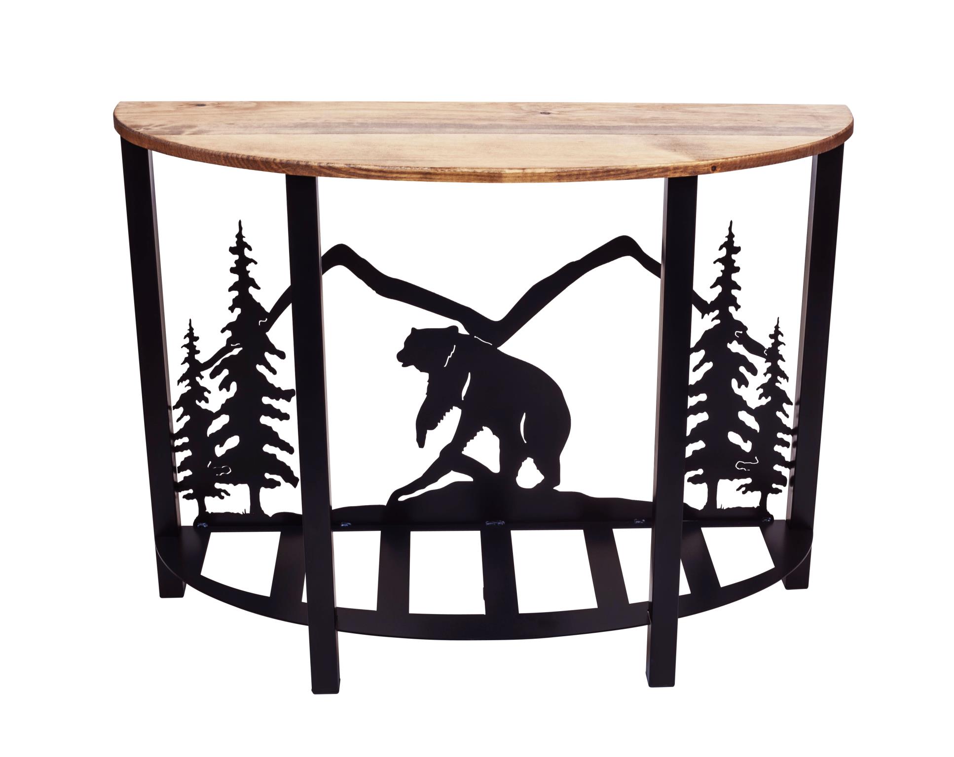 Black/Stain Rounded 3D Sofa Table with Bear Scene