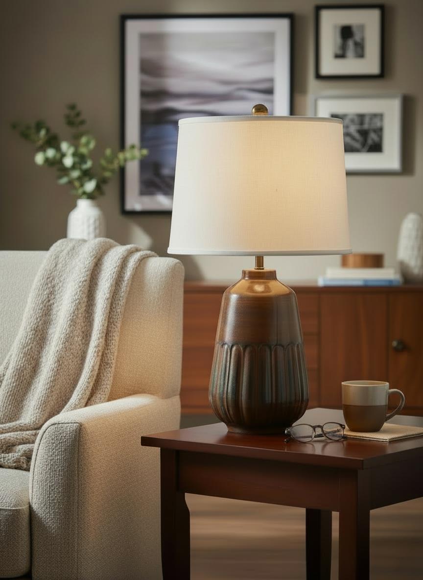 Distressed Camel Fluted Base Table Lamp