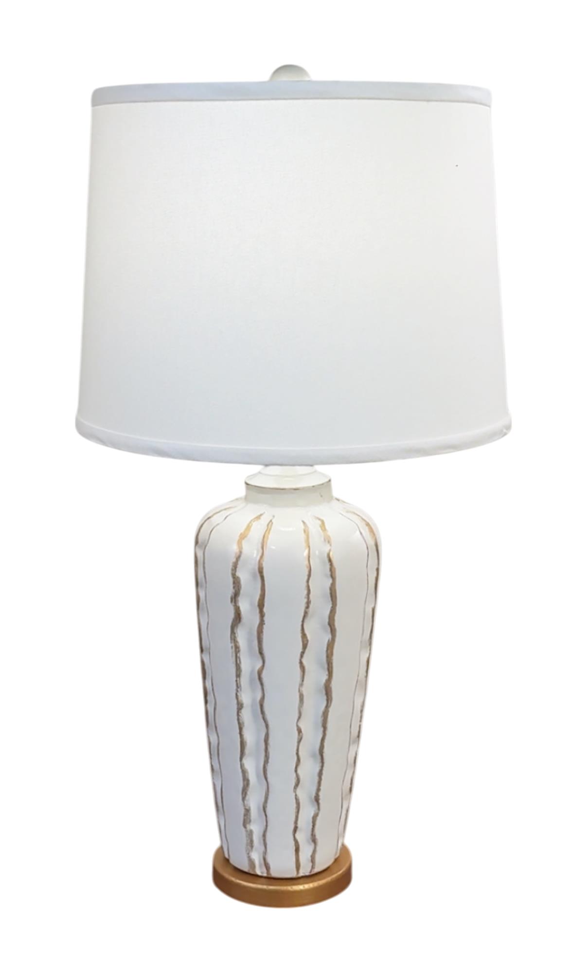 High Gloss Nude Indented Vase Table Lamp with Gold Accent and Base
