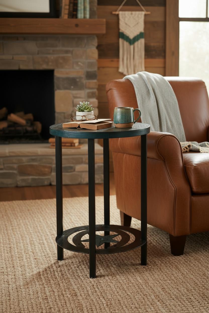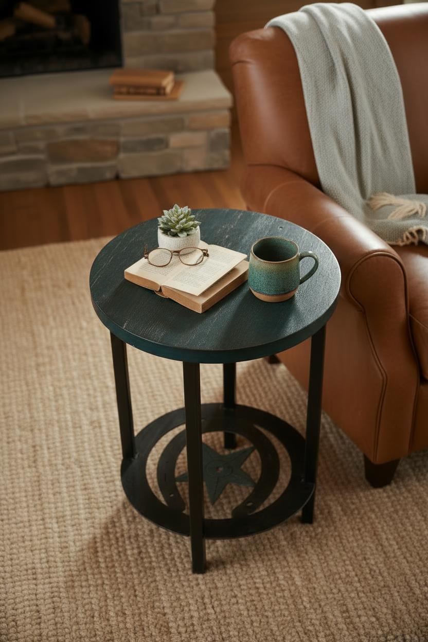 Kodiak/Jade Accent Round End Table with Horseshoe/Star Accent
