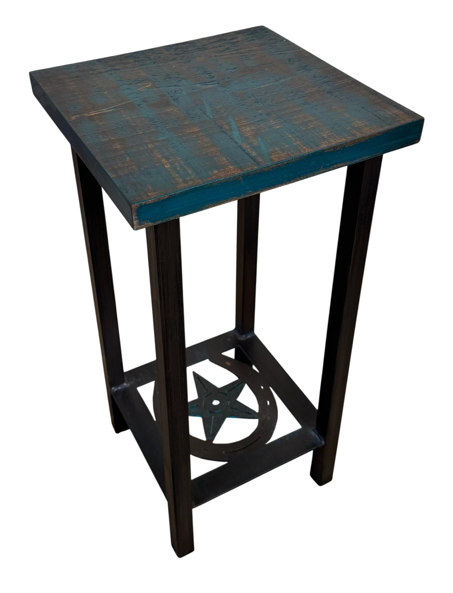Kodiak/Jade Square Iron Drink Table with Horseshoe/Star Accent and Wood Top