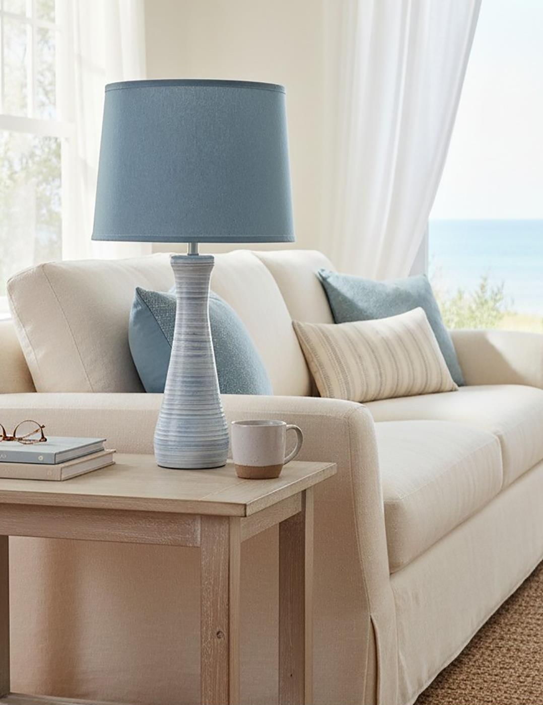 Nude/Atlantic Grey Ribbed Hour Glass Table Lamp with Atlantic Grey Shade