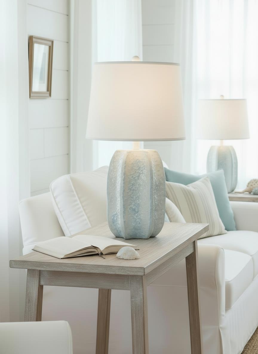 Nude/Atlantic Grey Textured Sculpture Table Lamp