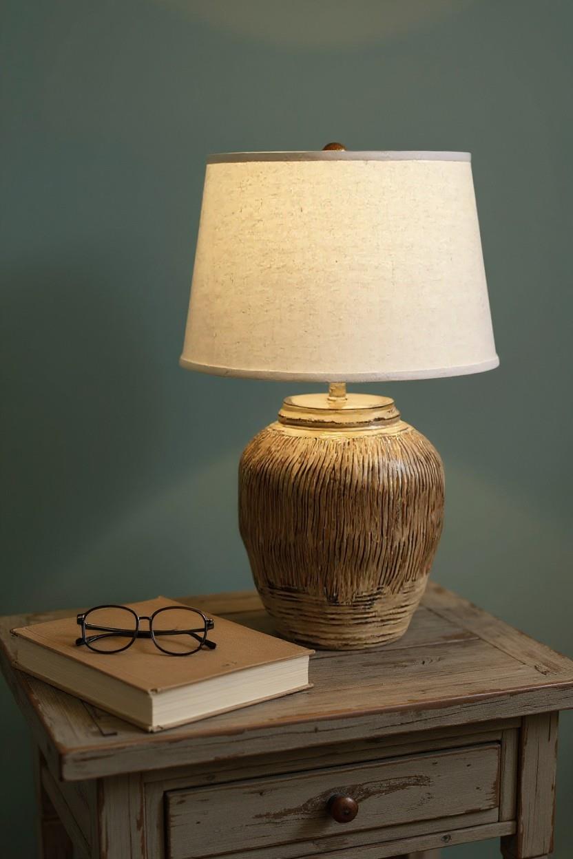 Rustic Short Round Wavy Vase Table Lamp