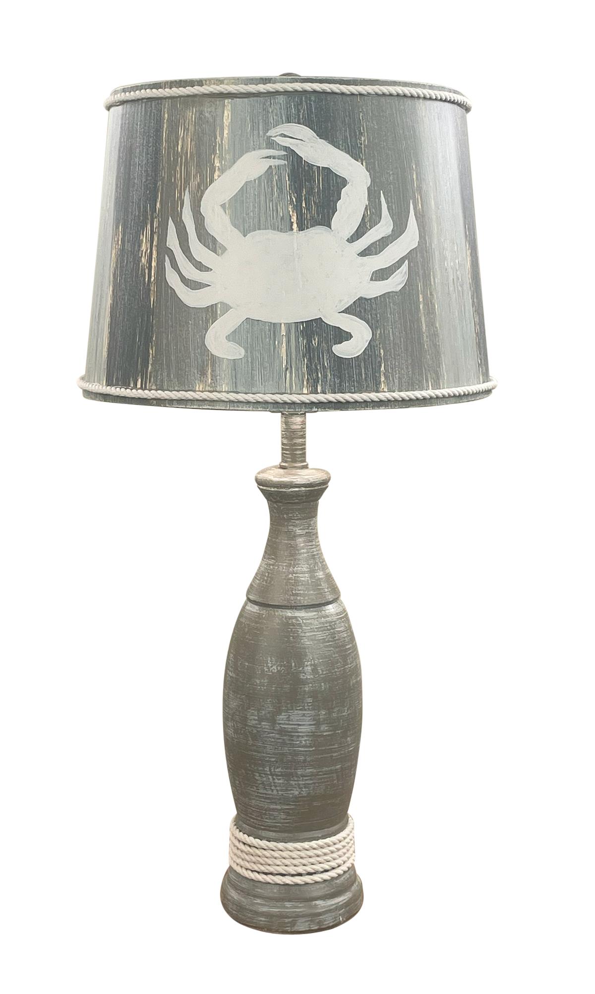 Weathered Grey Casual Pedestal Lamp w/White Rope Accent- Handpainted Crab Shade