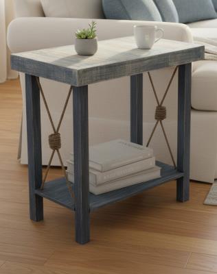 Iron Rectangle End Table w/ Rope and Deck Board Top