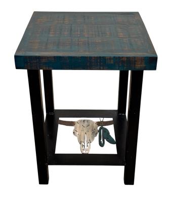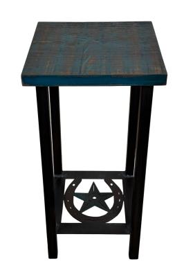 Kodiak/Jade Square Iron Drink Table with Horseshoe/Star Accent and Wood Top