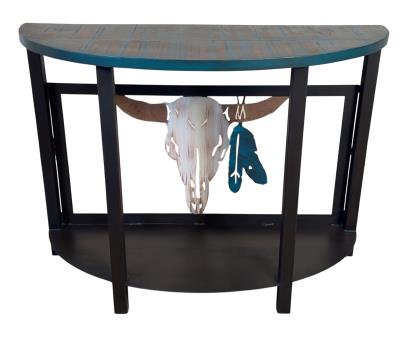 Southwest Square Iron End Table with Steer Skull and Feathers
